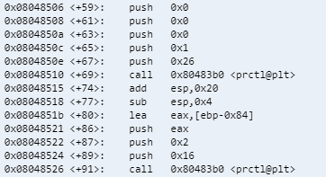 prctl은 prctl(option, arg1, arg2, arg3, arg4, arg5) 로 나타내어집니다.