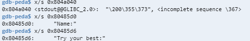 실행을 해 보니, Name: 를 통해서 이름을, Try your best: 를 통해서 문자열을 받아오고 프로그램이 종료됩니다.