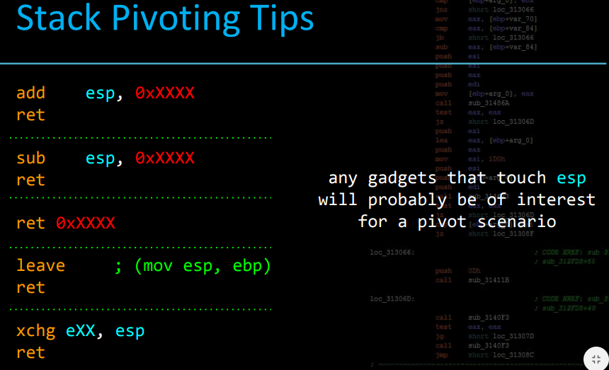 Gadget은 esp를 건드리는 명령어 + ret이 gadget이 될 수 있다고 합니다.