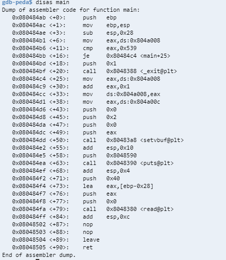 0x8048504를 leave_ret gadget으로 사용하겠습니다.