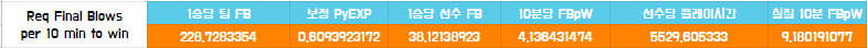 1승당 추가적으로 필요한 Final Blows를 구하기 위해 현재 제공된 데이터를 아래 수치에 대입해 봅시다.