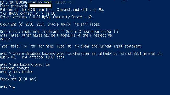 -> backend_practice DB를 만드는데 모든 문자열 지원되도록 만들기
