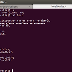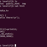 ==================================================== hint 레벨 14 이후로는 mainsource 문제를 그대로 가져왔습니다. 버퍼 오버플로우, 포맷스트링을 학습하는 데는 이 문제들이가장 효과가 좋습니다. #include #include main(){int crap;int check;char buf[20];fgets(buf, 45, stdin);if(check == 0xdeadbeef){setreuid(3095,3095);system("/bin/sh");}} ==================================================== 마찬가지로 소스코드를 복사하여 tmp 디렉토리에 붙여넣고 컴파일을 하여 gdb에 올려봤습니다. 0x38, 즉 ..